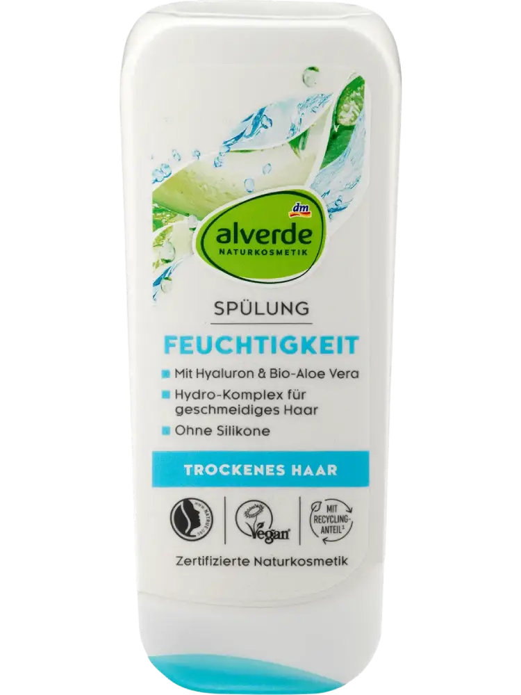 تم تطوير بلسم الترطيب Aloe Vera & Hyaluron من alverde NATURKOSMETIK خصيصًا لتلبية احتياجات الشعر الجاف والمتقصف. تحتوي تركيبته على مركب ترطيب من حمض الهيالورونيك والألوفيرا والجلسرين من أصل طبيعي يساعد على حماية أطراف الشعر من الجفاف، وتنعيم بنية الشعر، ويمنح الشعر نعومة حريرية وسهولة في التمشيط