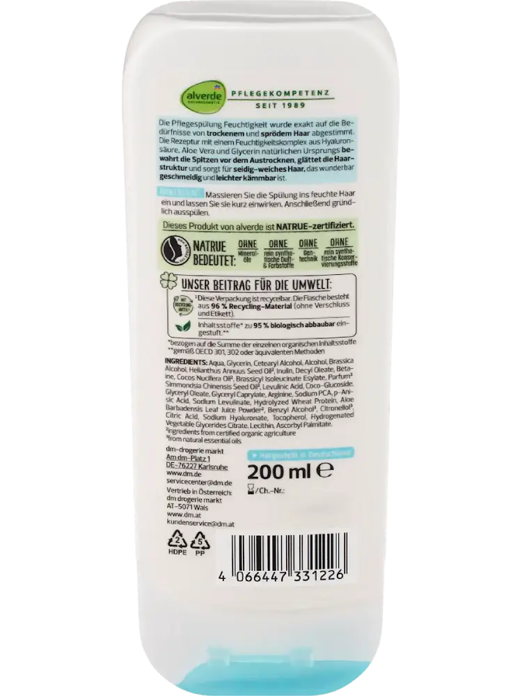 alverde NATURKOSMETIK Conditioner Feuchtigkeit Aloe Vera & Hyaluron, 200 ml