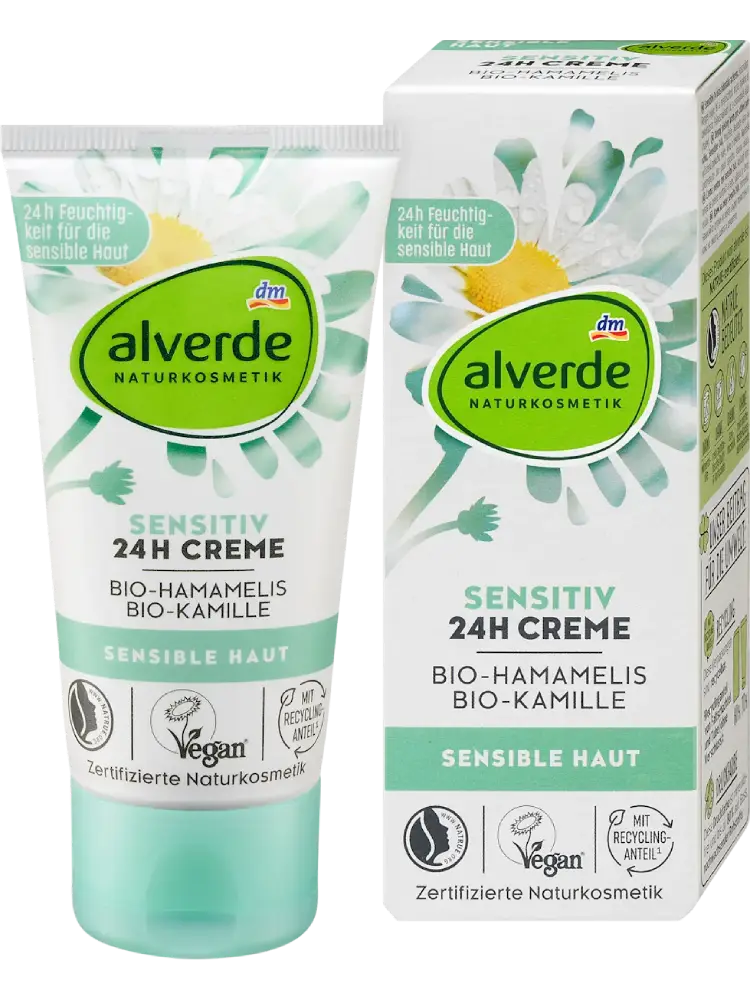 اكتشف كريم الوجه الحساس من alverde لمستحضرات التجميل الطبيعية، مع البابونج وبندق الساحرة، المعروفين باستخداماتهما المتعددة.