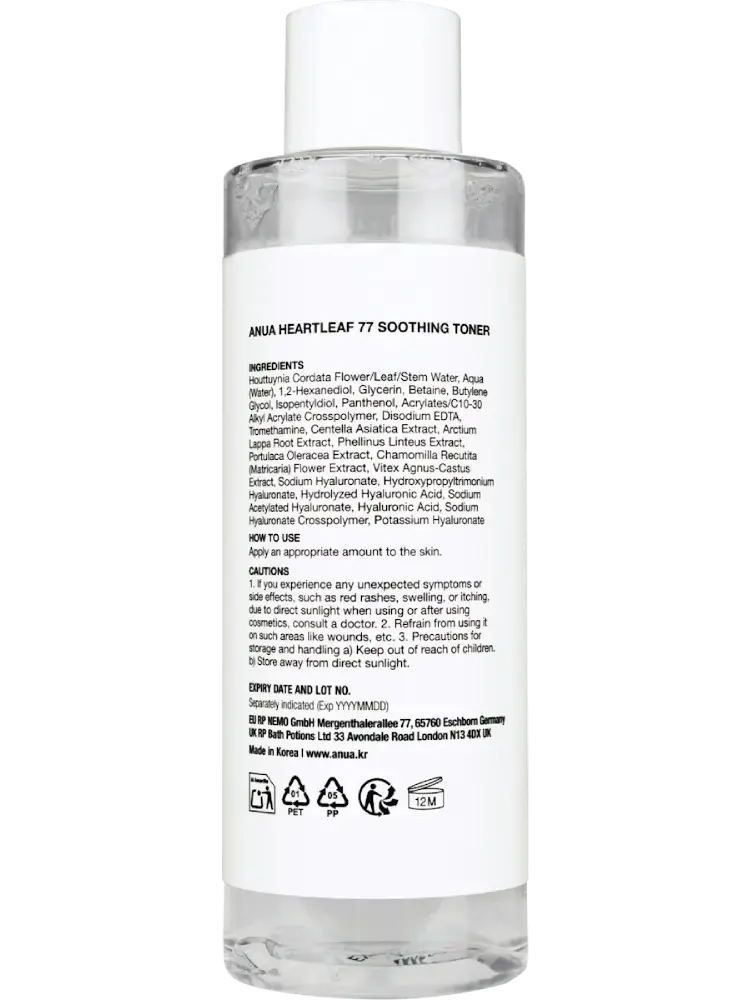 Le toner apaisant Heartleaf 77 de Anua aide à maintenir une peau équilibrée et apaisée. Grâce à une forte concentration de 77 % d’extrait de Houttuynia Cordata (Heartleaf), cette lotion tonique hydrate intensément la peau.