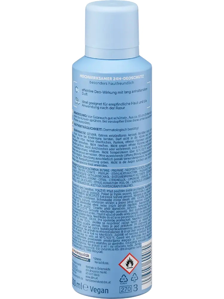يوفر بخاخ مزيل العرق Sensitive من Balea MEN حماية فعالة وطويلة الأمد للبشرة الحساسة. تدوم هذه الحماية القوية حتى 24 ساعة. وبفضل تركيبته اللطيفة الخالية من الألمنيوم والكحول، فهو مناسب أيضًا للاستخدام بعد الحلاقة. يمنح إحساسًا مريحًا وبشرة معتنى بها.