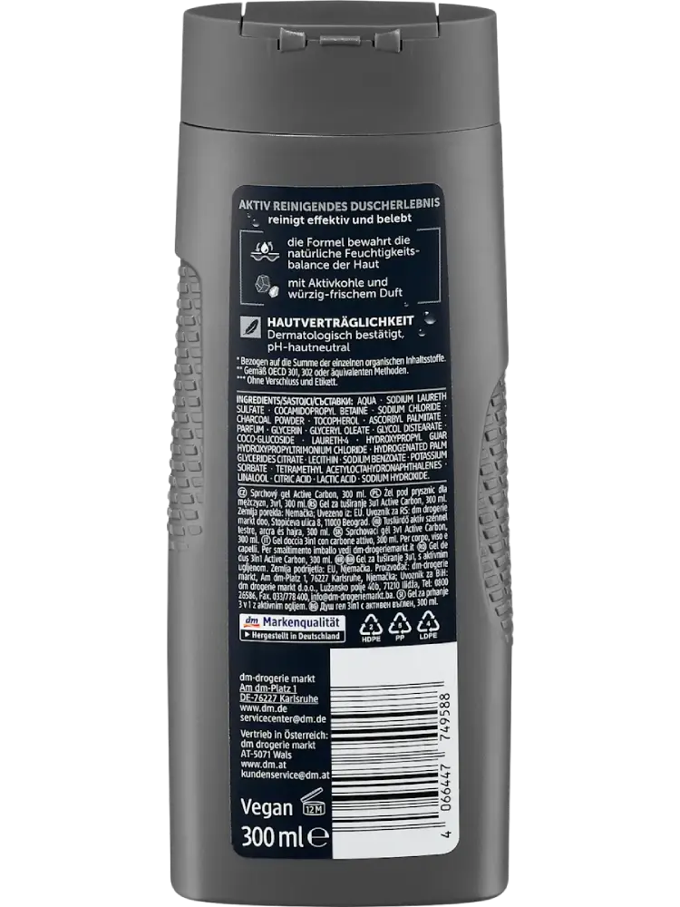 Balea MEN Gel douche Active Carbon 3-en-1, 300 ml