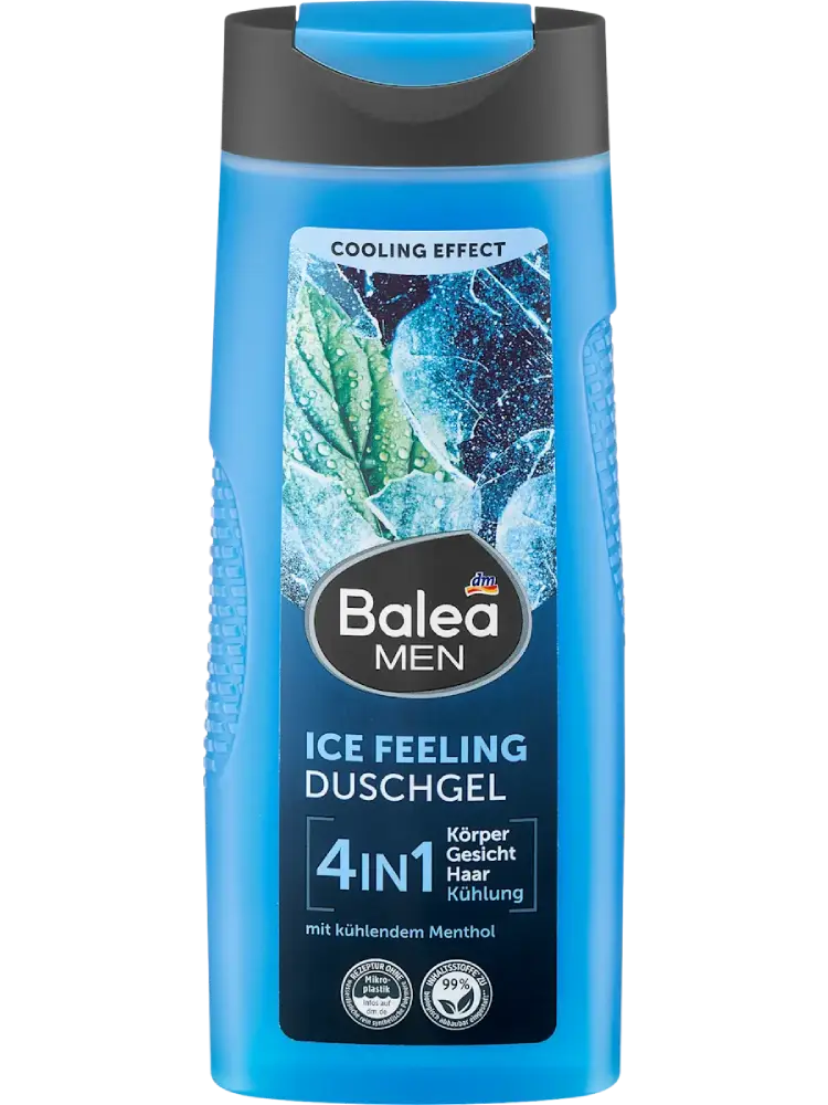 Le gel douche Ice Feeling de Balea MEN permet de gagner de la place grâce à sa formule 4 en 1, adaptée au corps, au visage et aux cheveux. Sa formule contient du menthol rafraîchissant, offrant au corps un effet fraîcheur stimulant chaque matin pour bien commencer la journée. En plus de son effet cooling, ce gel douche possède un parfum masculin et frais qui revitalise intensément les sens.