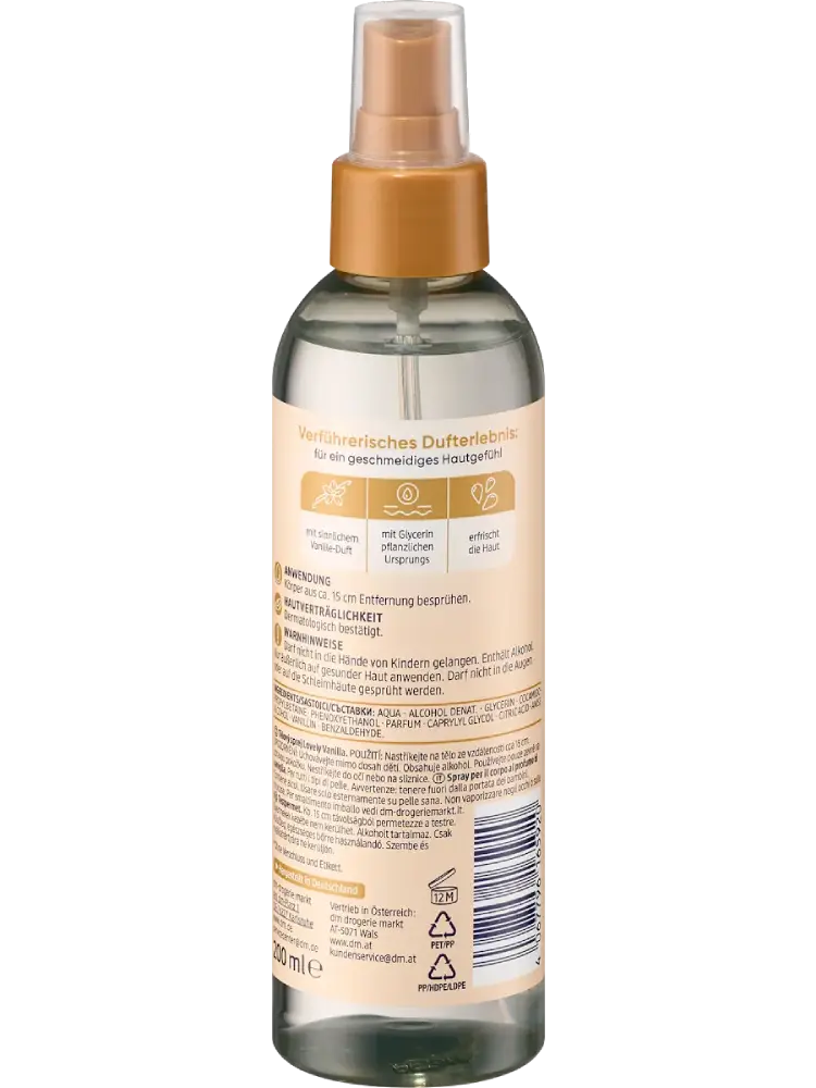 Le spray corporel Lovely Vanilla de Balea vous transporte dans un univers de sensualité et de séduction. Le parfum envoûtant de vanille enveloppe la peau et offre une expérience olfactive intense qui dure toute la journée. En même temps, il rafraîchit la peau et laisse une sensation de douceur. Une touche de luxe au quotidien.
