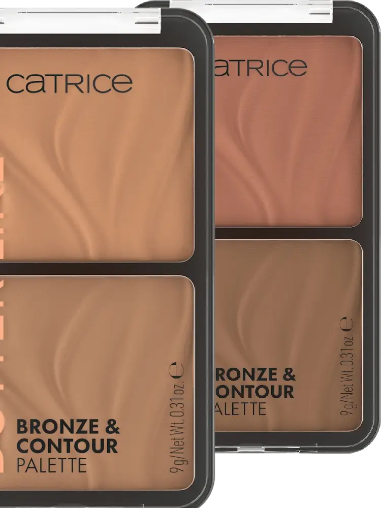 تجمع باليت Catrice Butter Like Bronze & Contour بدرجتي 010 Born أو 020 It My Way بين درجة برونزر دافئة ودرجة كونتور باردة في لوحة عملية.