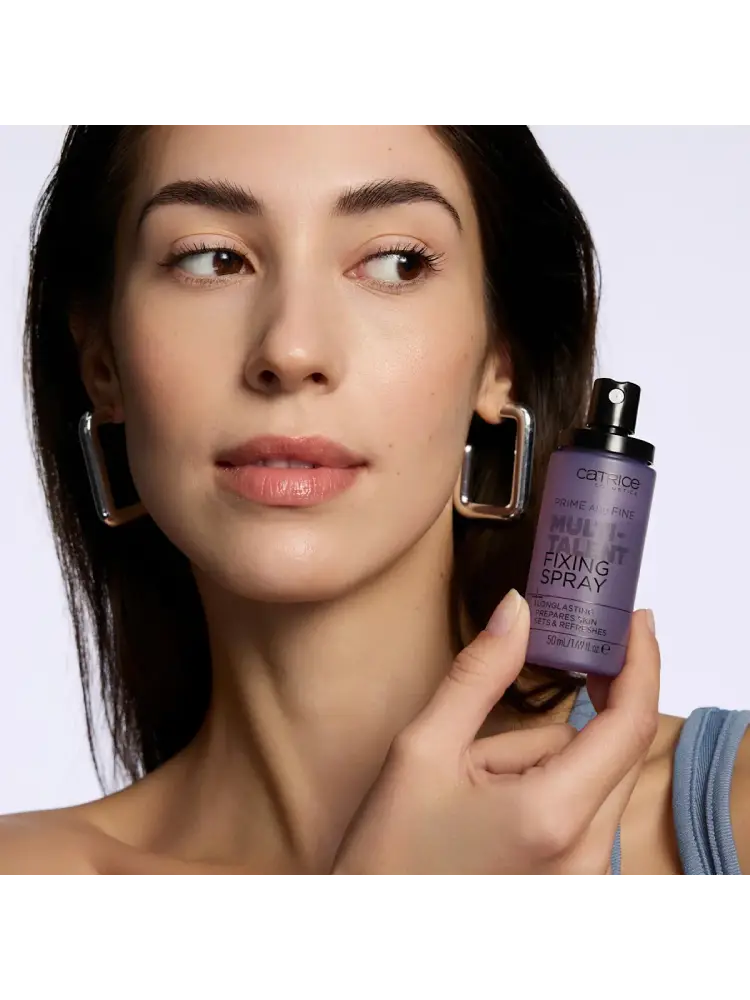 يُعد بخاخ تثبيت المكياج Catrice Prime And Fine Multitalent الشفاف منتجًا متعدد الاستخدامات يمنح المكياج لمسة نهائية مثالية تدوم طويلًا. يتميز هذا البخاخ بتركيبة خفيفة وسريعة الجفاف، ويمكن استخدامه بعدة طرق: كقاعدة (برايمر) قبل وضع المكياج، أو كرذاذ لتثبيت المكياج بعد الانتهاء منه، أو خلال اليوم لإنعاش البشرة.