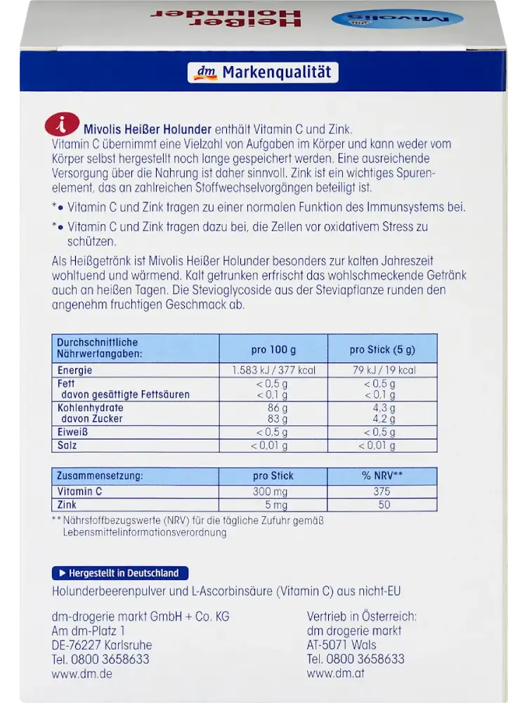 Mivolis Heißgetränk, Heißer Holunder (20 Sticks), 100 g