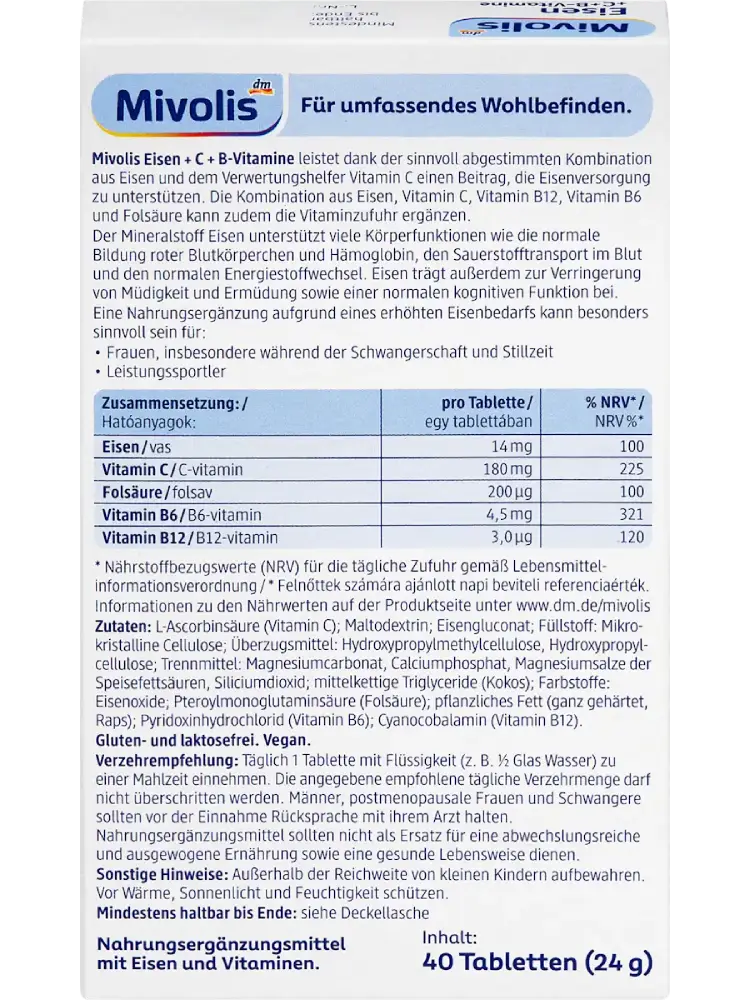 Mivolis Eisen + C + B-Vitamine Tabletten 40 St, 24 g