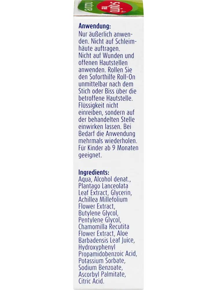 À usage externe uniquement. Ne pas appliquer sur les muqueuses. Ne pas utiliser sur des plaies ou des lésions cutanées ouvertes. Appliquer le roll-on de secours immédiatement après la piqûre ou la morsure en le faisant rouler sur la zone concernée. Ne pas frotter le liquide, mais le laisser agir sur la peau. Répéter l’application si nécessaire.