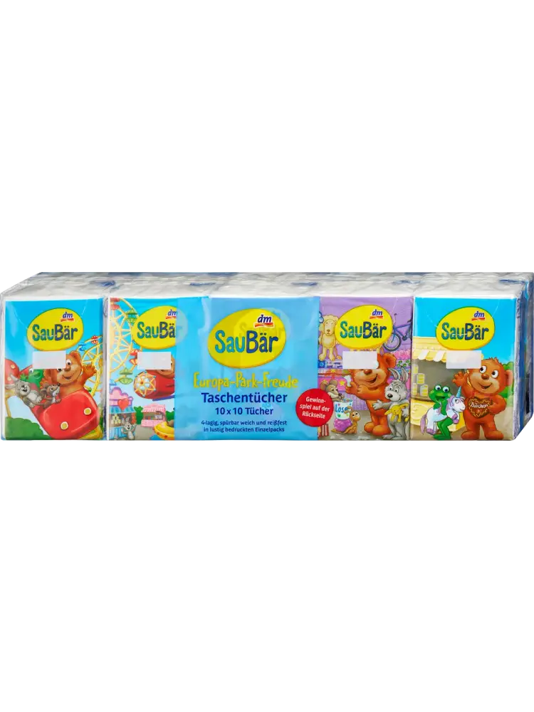 مناديل SauBär الجيبية بطبقاتها الأربع (10 × 10) ناعمة كالحرير وفي الوقت نفسه مقاومة للتمزق، ومثالية لأنوف الأطفال الحساسة. كما أنها مبيّضة بنسبة 100٪ بدون استخدام الكلور.